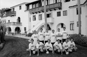 1999 Installation im Speisezimmer (Installation in the dining room) Villa Aurora / Los Angeles Hartfaserplatte (Masonite) / Kunststoffsaugnäpfe (PVC) / Neonleuchten (Circle light) / The Cambridge Modern History, (Vol.I - XIII, Cambridge 1911/1934) / 1 Tisch (1 table) geschredderte Zeitungen L.A. Stadtkulturmagazine (shredded newspaper, L.A. Stadtkulturmagazine: LA Weekly / New York Times Oct.1st - Dec. 8th, 1999.
