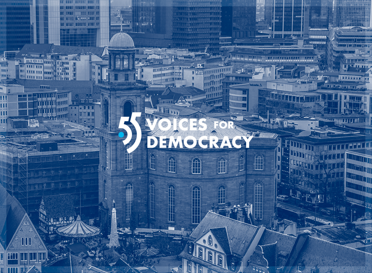 Die Frankfurter Paulskirche wird die Beiträge ab dem 2. September dauerhaft in ihrer Ausstellung präsentieren. Der Festakt mit Redebeiträgen der Thomas Mann Fellows Jutta Allmedinger und Rainer Forst sowie Honorary Fellow Frido Mann anlässlich der Eröffnung der 55 Voices-Medienstationen wird als Live-Stream übertragen.