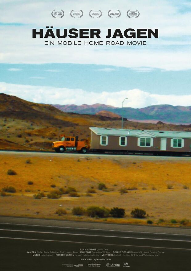Chasing Houses is a road movie featuring a house, traveling across the American West on Route 66 to Monument Valley – with unusual companions. The movie presents a snapshot of contemporary life in America as exemplified by pre-fabricated mobile homes and trailers: between domesticity and infinite expanse, freedom and precarious lives. We see different fates and life plans unfold; we meet the people who live in these houses, the ones who transport them and those who sell them. They describe their hopes and dreams as well as the struggles they are facing.
