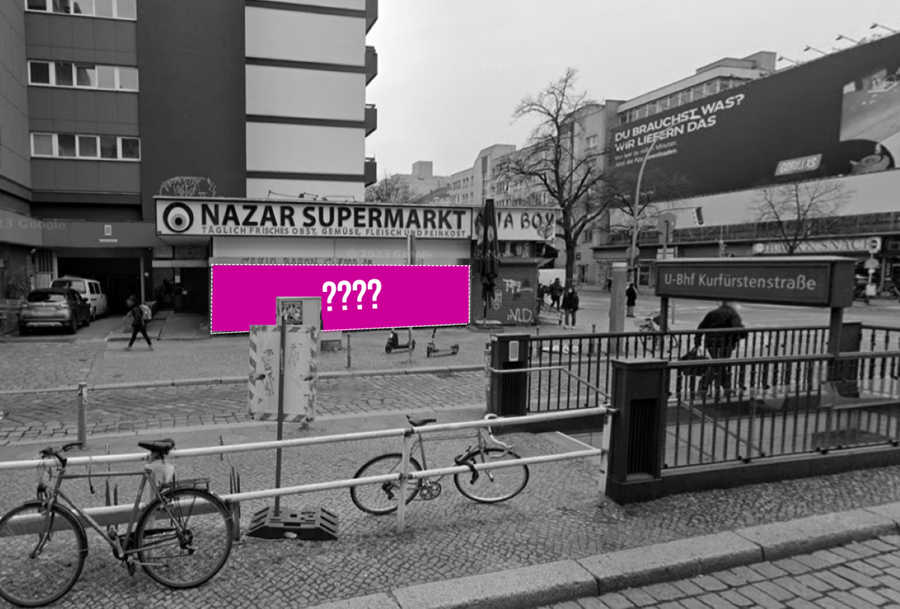 For the Kottbusser Tor, Lukas Glinkowski has created Connect the Dots, an interactive connect-the-dots image with over 10,000 dots. The work was inspired by the artist's personal experiences during his stay at Villa Aurora in 2019. At that time, he witnessed forest fires in Pacific Palisades at close range. The work is dedicated to the efforts of the firefighters.・Skalitzer Straße/Kottbusser Tor