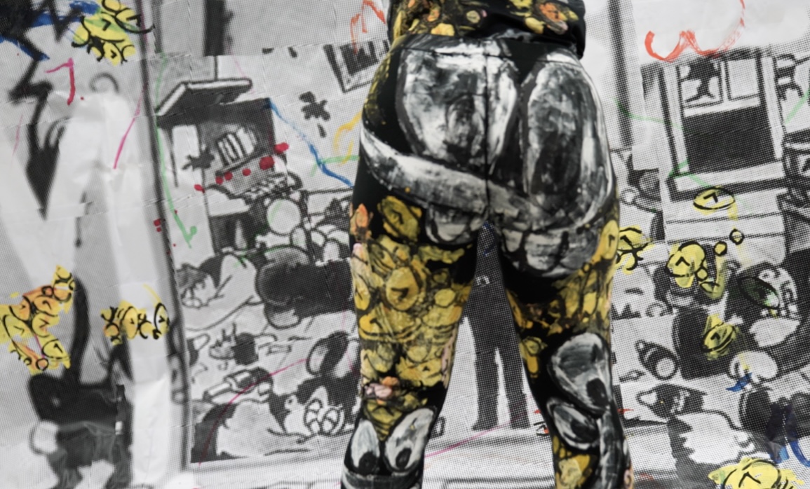 She examines the conditions of painting by stretching the medium’s boundaries through experimental interventions – for example by using gif and loop techniques as well as sound effects -, a multidimensionality is created that gives the painting character of movement and thus locates it in the tradition of cartoons. In this process of animation of collages, which is so essential for her work, Szczesny combines formal studies and citations of pop culture and art history.